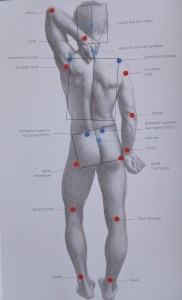 The book includes a drawing indicating the big three masses of the body (head, rib cage, and pelvis) as well as 19 joints and bony landmarks. “These landmarks will, if carefully observed, reveal what the boxes, and thus the skeleton, are doing. Memorizing these landmarks is a great help to understanding any pose the model may take.”