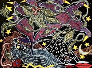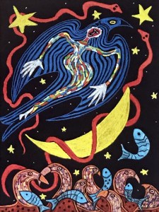 “Is this dream, vision, myth or fairy tale? In the labyrinth of the psyche, all three are one. The symbols are secret—from unspoken sources—yet universal, attuned to the lexicon of humanity’s collective unconscious.” This reminds me of Arthur Danto’s phrase “wakeful dreams” in What Art Is.