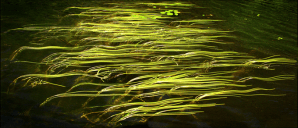 “I always smile to recall how this photo came about. We were cruising along the lake shore returning from fishing when I spotted this patch of eelgrass and shouted, ‘Stop!’ As I jumped onto the skiff’s seat with my camera pointed downward, my partner, whose sole use for photography was posing with trophy fish, peered at me incredulously from the stern and growled: ‘What in hell are you taking a picture of?’ Well, the subject of my madness turned out to be one of my favorites, thus justifying (I guess) my momentary dementia.”