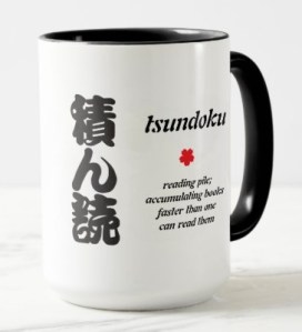 Tsundoku is a real Japanese word meaning the accumulation of unread books — a feeling any bibliophile can relate to. The Kanji characters literally mean reading pile, with a connecting Hiragana character in the middle. The definition in the design says, “reading pile; accumulating books faster than one can read them.”